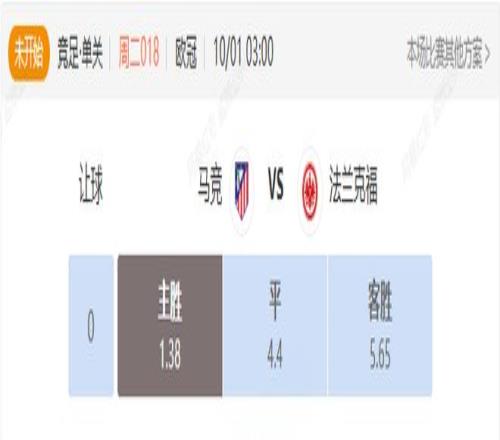 馬競紙麵實力和形象都強於法蘭克福,兩支球隊風格迥異,馬競攻守均衡,法蘭克福大開大合。兩支球隊是曆史上首次交手,又都是剛剛經曆大勝,狀態都不錯,所以比賽不會沉悶。機構給了馬競超過1.0的讓步,非常看好馬競獲勝。個人也更看好攻守均衡的球隊,這類球隊在關鍵比賽中戰績都不差。