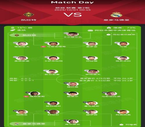值得一提的是,兩隊首發身價相差懸殊:凱拉特首發總身價隻有675萬歐元,而皇馬首發11人總身價為6.54億歐元,是凱拉特首發總身價的96.9倍。