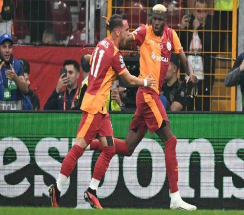 第15分鍾,奧斯梅恩主罰點球命中,幫助加拉塔薩雷主場1-0先下一城,現場數萬球迷瞬間沸騰了。