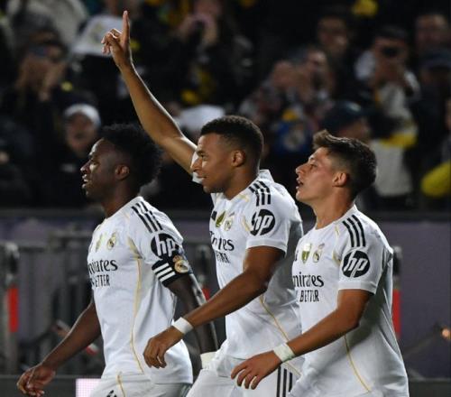 用了長達10個小時的飛行,皇馬才來到了遠征的哈薩克斯坦客場;雖然上輪馬德裏德比慘敗,但這場比賽並沒有讓銀河戰艦遇到太多麻煩。上半場姆巴佩便點球破門打開了勝利之門;在對手實力不在同一平均線以及體能下降後,姆巴佩第52分鍾單刀赴會擴大優勢;第73分鍾又接到居萊爾回敲後拔腳怒射完成了帽子戲法。替補出場的羅德裏戈助攻卡馬文加錦上添花,迪亞斯補時階段再進一球,皇馬5:0大獲全勝。
