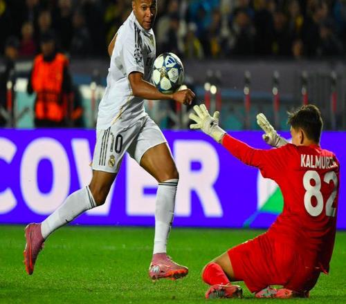 皇馬獲得點球,姆巴佩操刀主罰,穩穩命中,皇馬沒有費多大力氣,就取得領先。