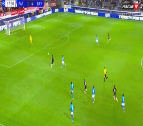 比賽勝負已經失去懸念,拜仁球員也放鬆起來。第45分鍾,金玟哉後場解圍力量太輕,奧爾西奇將球斷下,禁區前沿突然起腳吊射,打了諾伊爾一個措手不及,皮球擊中立柱彈入網窩,帕福斯扳回一城,1-2!