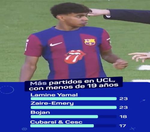 如果此役對陣巴黎聖日耳曼出場,亞馬爾將以24場成為19歲之前歐冠出場次數最多的球員,打破巴黎中場紮伊爾-埃梅裏保持的紀錄(23場)。