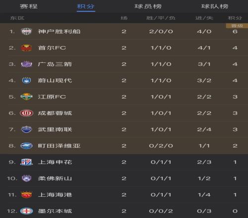 其他球隊方麵,日本3支參賽隊開賽2輪依然不敗。神戶勝利船取得2連勝,廣島三箭1勝1平,町田澤維亞則是2連平。