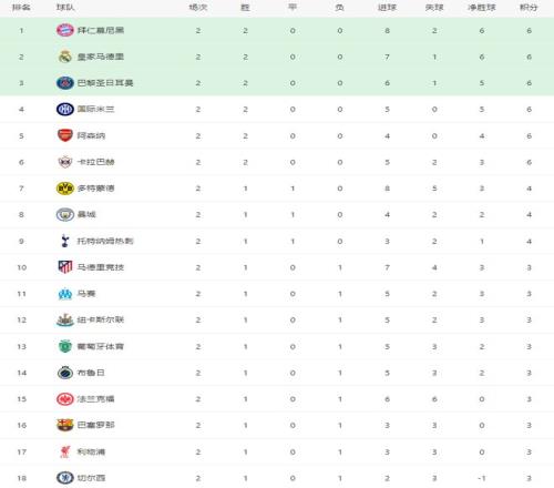 最新積分榜排名,卡拉巴赫積6分,追平拜仁、皇馬、巴黎、國米、阿森納五大豪門,因淨勝球落後排名第六位,依然高於多特、曼城、馬競、巴薩、利物浦、切爾西等眾多豪門,也是出乎球迷的意料,配得上開局以來的最大黑馬身份。