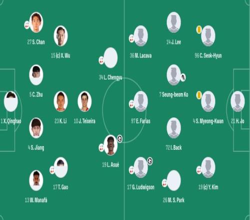 後衛:4-徐名寬、17-古斯塔夫·盧德維格鬆(81'2-趙玹澤)、19-金英權(81'15-鄭升炫)