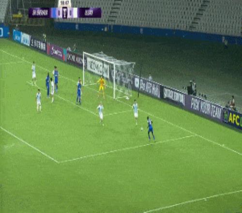 第33分鍾,吳曦中圈長傳身後,阿蘇埃搶到一點球後,被摔倒的蔚山HD球員帶倒,主裁拒絕判罰點球。