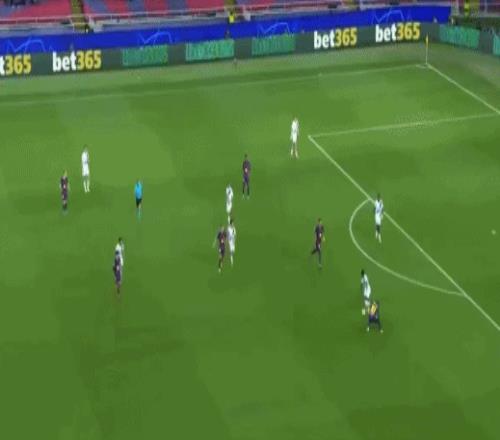 在本方後場左側,努諾-門德斯開始飆車,先用人球分過戲耍孔德。與隊友打出撞牆配合之後,努諾-門德斯繼續高速狂奔。巴薩後場一片空虛,努諾-門德斯將球傳給3秒之後的自己,用速度生吃奧爾莫、孔德、德容。