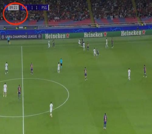 此後長達50分鍾的時間裏,兩隊都無法再次破門。第89分鍾,巴薩後場控球。此刻,巴黎開始全場逼搶。89分鍾20秒,巴黎成功斷球。巴黎球員並不著急反擊,他們將球回傳。