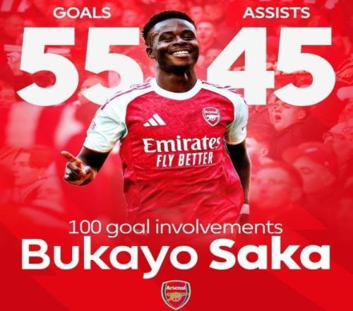 薩卡完成阿森納生涯200場英超裏程碑,此前的比賽中他代表槍手在英超賽場上取得54球外加45個助攻的數據。如今,薩卡在職業生涯當中參加的第200場英超聯賽的比賽,製造 了第100粒英超進球,這意味著他剛好每兩場比賽就能直接參與一個進球。