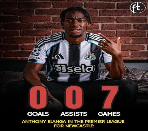 值得一提的是,埃蘭加在加盟紐卡斯爾聯後的前7場英超比賽中,尚未參與任何進球。