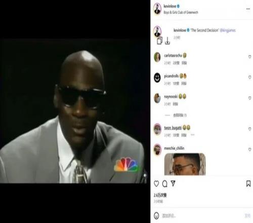 多年老友樂福則曬出喬丹在2003年於華盛頓MCI中心(現第一資本球館)舉行的退役儀式上的演講視頻,打趣配文道:“決定二。”