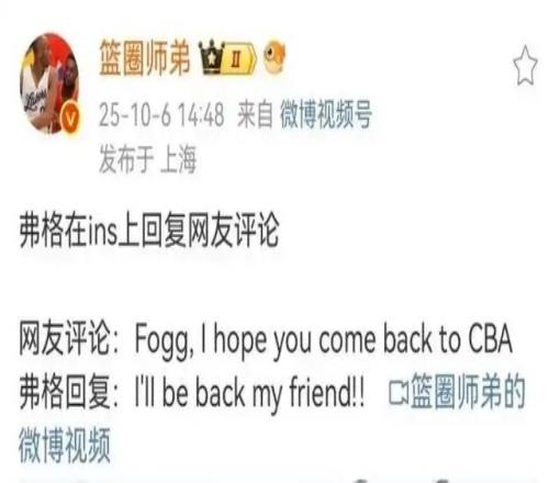 不過最近弗格和球迷互動的時候,表示自己確定會重返CBA賽場,據了解目前包括江蘇男籃在內,有三支球隊在和弗格進行接觸,其中加盟江蘇男籃的可能性非常大。