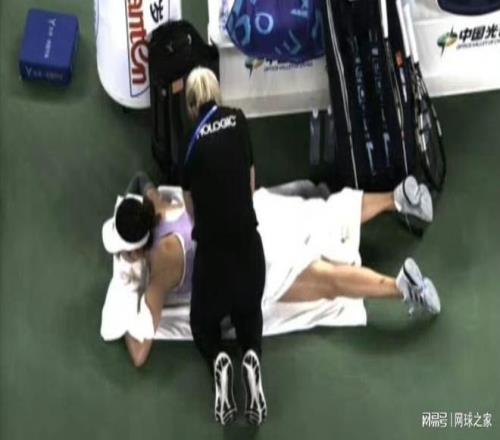 戰至盤中,王欣瑜請求醫療暫停,現場醫生來到場地內為她進行腰部處理和按摩。