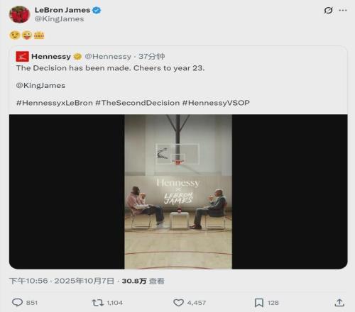 北京時間10月7日晚11點左右,詹姆斯提前一個小時公布自己的決定,他沒有宣布退役,也跟亞馬遜無關,而是發了另一個廣告。詹姆斯穿上當年加盟熱火的襯衫,他在視頻中表示,自己決定將天賦帶給軒尼詩(著名白蘭地品牌)。