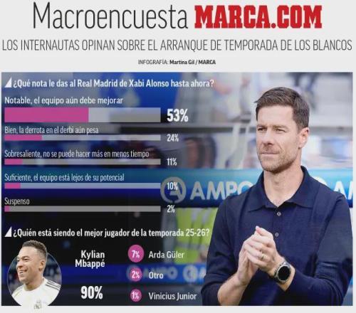 雷速體育10月8日宣 今天《馬卡報》進行了一項民意調查,對皇馬換帥之後的新賽季至今的表現進行了評價。
