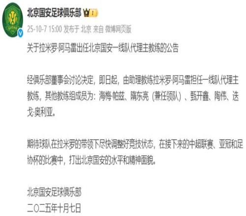 中超先河!北京國安另辟蹊徑:官宣“沙灘足球皇帝”擔任代理主帥