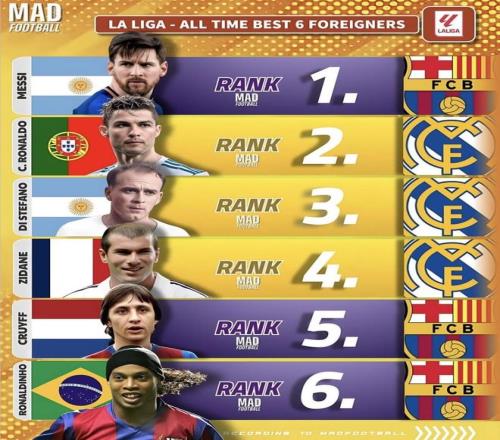 近日 MADFOOTBALL 發布“西甲曆史最佳外援6人”榜單。最大爭議很直接:大羅等諸多知名選手竟然沒進。這份榜單到底更看“打得久”還是“巔峰強”?下麵按統一口徑給出入選者與遺珠的硬指標,最後再說我覺得誰該把誰換下。