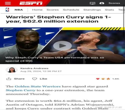 庫裏是NBA裏目前改變了一個時代的球員,多少錢都可以給,用錢來說庫裏是蒼白的,改變了籃球玩法的球員。