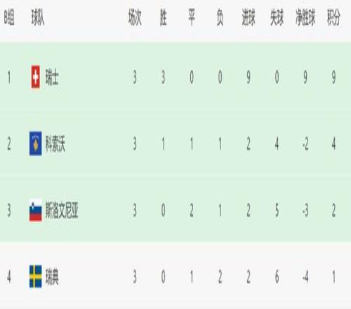 本場過後,瑞典隊前3輪1平2負,僅僅拿到1分。在世預賽B組,瑞典隊排名第四不幸墊底,目前他們落後榜首的瑞士隊8分之多。理論上講,瑞典隊還有機會競爭小組第一,但是實際來看,他們已經基本沒有希望了。事實上,瑞典隊別說競爭小組頭名,他們連第二名都未必拿得到。