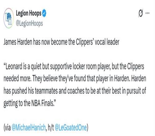 這番話表明,哈登不僅融入了快船隊這個團隊,而且還成為了球隊的發聲者。萊昂納德是一個安靜但能給予支持的更衣室球員,但快船隊需要更多。他們相信在哈登身上找到了這樣的特質。