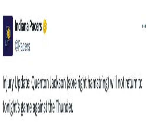2人傷退!步行者官方宣布傑克遜&弗菲因傷提前退出比賽_24直播網