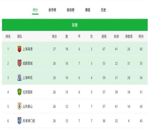 在成都蓉城、上海申花等對手尚未完善的前提下,海港隊目前在積分榜的位置。