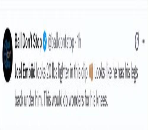 美媒:感覺恩比德減重了20磅,他的雙腿變得很有力量,這對於減輕膝蓋的壓力很有效。