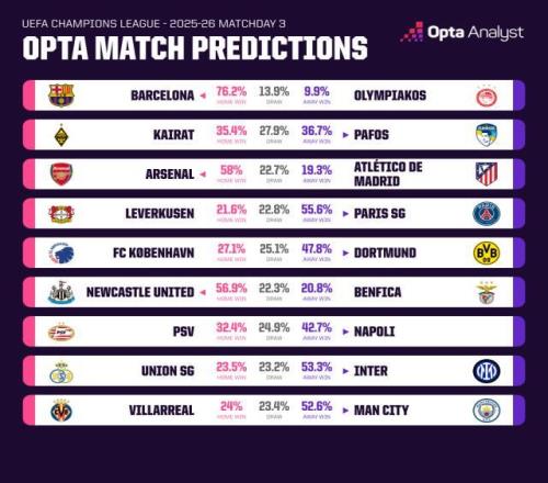 歐冠聯賽階段第3輪本周三淩晨對陣