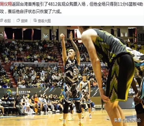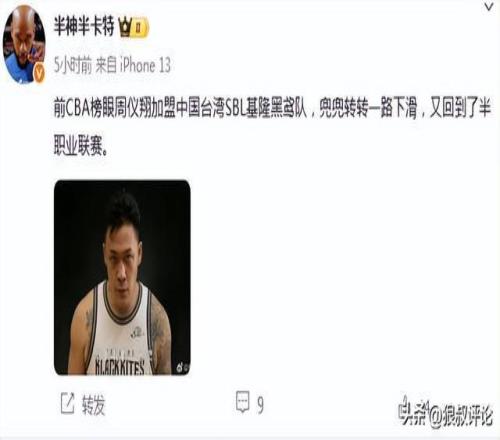 北京時間10月22日,根據媒體人“半神半卡特”報道,前CBA榜眼周儀翔加盟中國台灣SBL基隆黑鳶隊,又回到了半職業聯賽。