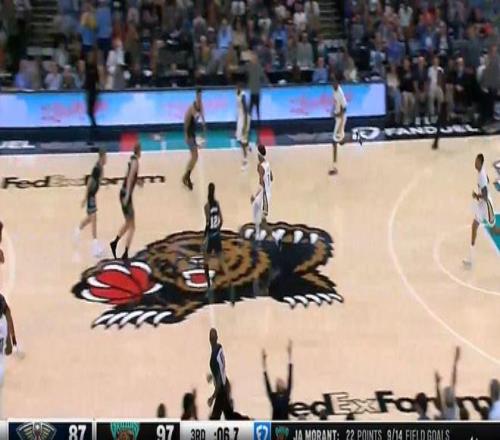 第三節比賽,莫蘭特手感火熱,單節7投6中拿到13分1助攻1搶斷,主導灰熊逆轉鵜鶘,最多時灰熊反超鵜鶘兩位數。