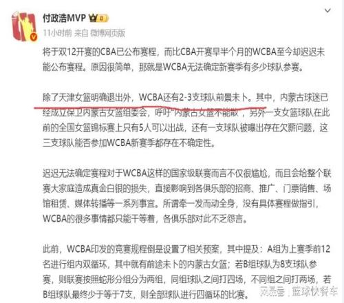 除了內蒙古外,根據該媒體人透露,其實還有1-2支球隊,他們目前的處境也非常尷尬。據悉,有一支球隊在前陣子參加全國錦標賽時,居然隻有5名球員報名參賽,而根據WCBA新賽季的注冊規則,一支球隊國內球員至少需要注冊12名球員。換句話說,這支連6名球員都湊不到的球隊,根本就達不到WCBA聯賽的注冊資格。另外,還有的球隊因為欠薪緣故,或許將被迫退出WCBA。