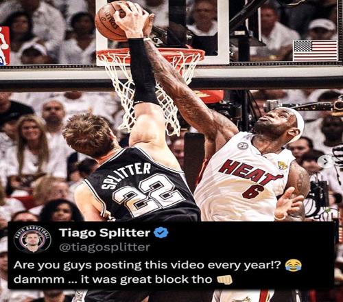 好在13-14賽季,斯普利特跟隨馬刺實現了複仇,並在總決賽G1也蓋了一個詹姆斯帽,以4-1擊敗熱火奪得了NBA總冠軍,而他也成為首個奪得NBA總冠軍的巴西球員。