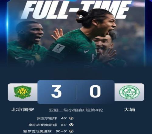 最終,經過90分鍾激戰,坐鎮主場的北京國安隊3-0擊敗港超球隊大埔,取得亞冠二級聯賽首勝。