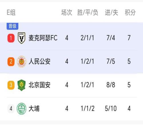 隨著第4輪的結束,E組最新積分榜也發生變化,此前排名墊底的國安,取勝之後積分來到5分,追平了人民公安隊,小組賽還有最後兩輪,希望北京國安再接再厲,一舉出線!