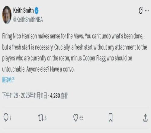 自從東契奇和濃眉的交易達成之後,湖人取得30勝16負,獨行俠隻有16勝28負。另一記者Keith Smith認為:“獨行俠解雇哈裏森是正確選擇,他必須為獨行俠的爛攤子負責。獨行俠應該開啟交易談判,除了弗拉格,其他都能放上談判桌。”