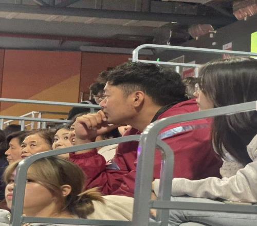 第十五屆全運會U20男排比賽現場,王宇在看台觀賽。(孔令旖攝)