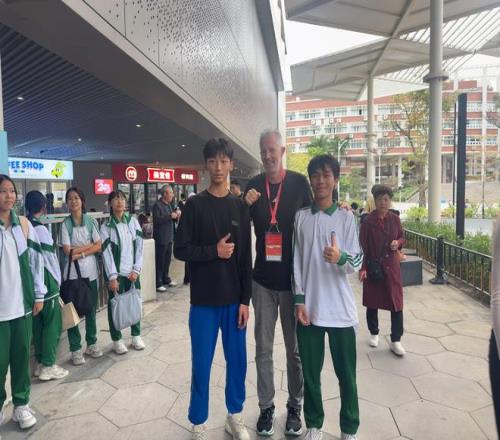 從五山地鐵站走到華農體育場短短的幾百米,中國男排主教練維塔爾·海寧好幾次停下來和熱情的市民合影。海寧出生於比利時,曾執教波蘭男排、德國女排等隊伍,於2024年出任中國國家男子排球隊主教練。“在波蘭我很少會和別人合影,但是在中國我非常願意從不拒絕。”說罷,他攬著孩子們露出標誌性的笑容。