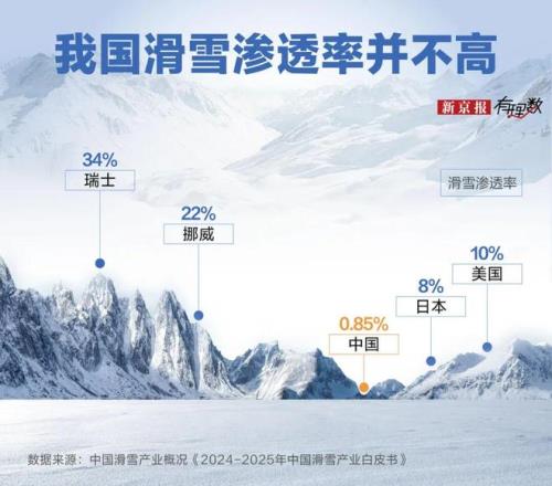 2024雪季數據顯示,目前國內滑雪市場尚未形成穩定的滑雪消費群體,滲透率僅0.85%,而美國、日本滑雪人口滲透率都在10%左右,挪威瑞士更是超過20%。在這些國家,許多人從小就學習滑雪,並將其視為生活方式的一部分,這也意味著,滑雪人群的年齡層會更豐富。