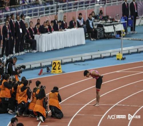 這是蘇炳添職業生涯中最後一場比賽。賽後,蘇炳添向觀眾告別,他說:“能夠堅持到今天,在我的家鄉跟大家說一句再見,我感到非常榮幸。今天看整個體育場都是高朋滿座的,謝謝你們的到來!”