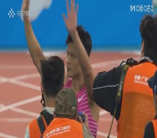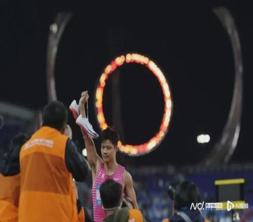 蘇炳添表示:“能夠堅持到今天,在我的家鄉跟大家說一句再見,我感到非常榮幸。今天看整個體育場都是高朋滿座的,謝謝你們的到來!”