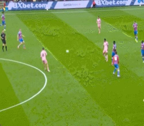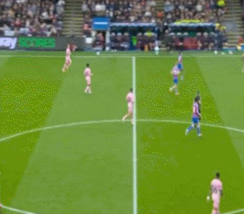 就像是上麵動圖中的這種球,水晶宮中場拿到球權後,沃頓會很著急打反擊,但他越是想加速,失誤就越多。