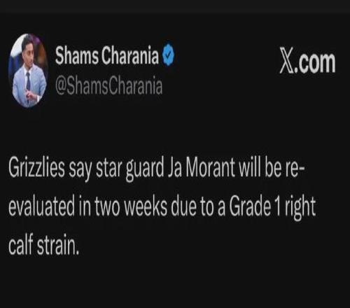 前幾天灰熊100-108不敵馬刺的比賽,莫蘭特在此役首節遭遇右小腿一級拉傷,至少需要休戰兩周時間,他已連續兩場高掛免戰牌,包括如上所述球隊大勝國王的比賽。