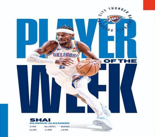 過去一周,亞曆山大率隊取得4勝0負的佳績,他場均能得到31分4.3籃板6.5助攻2.0搶斷,投籃命中率60%,三分命中率64.3%。