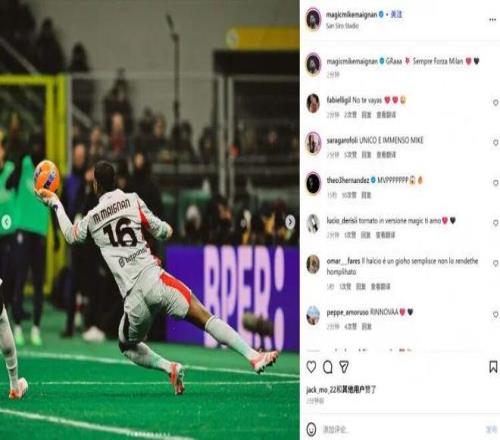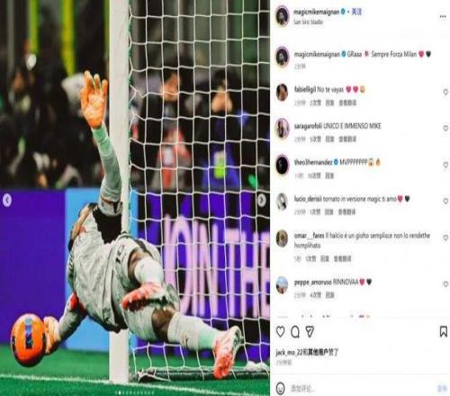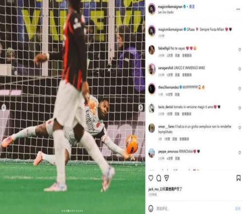 邁尼昂也在賽後通過社媒曬出自己的多張撲救照,並配文:“哈! 永遠佛砸米蘭❤️”
