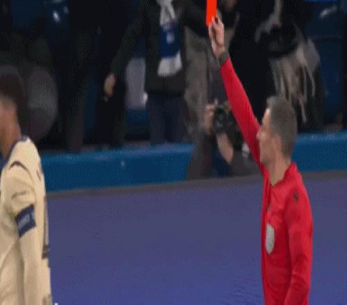 2024年4月17日 歐冠1/4決賽 巴塞羅那1-4巴黎聖日耳曼 阿勞霍第29分鍾被直紅罰下