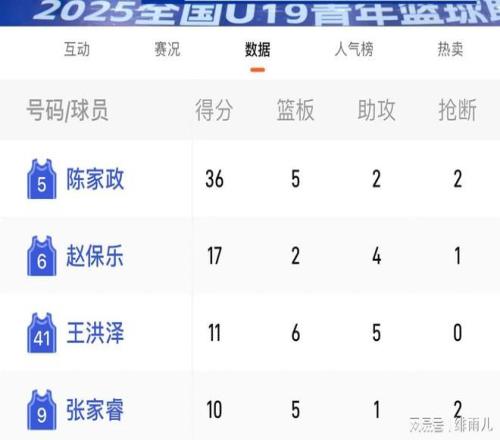 本場比賽,廣東U19男籃展現出了令人驚喜的陣容深度。在楊溢缺陣的情況下,球隊依舊能夠打出行雲流水的整體進攻,防守端也保持了高強度壓迫。作為中國U19男籃的隊內得分王,陳家政本場比賽在22分鍾的出場時間內,20中14瘋狂砍下36分,並送出5個籃板2次助攻和2次搶斷的數據。尤其在第一節比賽中,陳家政裏突外投獨取18分(對手吉林隊全隊隻有7分),幾乎以一己之力徹底撕碎了吉林隊的整個防線。無論是外線的幹拔三分,還是突破到內線的高難度終結,陳家政都展現出了超越同齡人的成熟終結能力與得分爆發力。