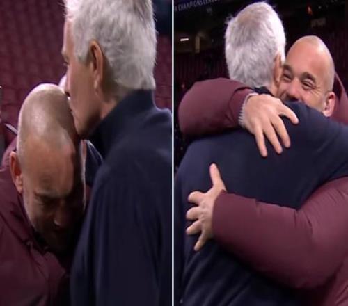 隨後,穆裏尼奧親吻了斯內德的光頭,又再次擁抱了斯內德。兩人曾在國米共同贏得意甲聯賽冠軍、意大利杯冠軍和歐冠聯賽冠軍。