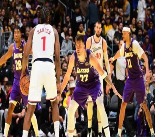 東契奇開場後火力全開,幫助紫金軍團搶占先機。哈登攜手科林斯砍分,快船多點開花得以緊咬比分。首節打完,湖人落後1分,東契奇單節轟下24分。