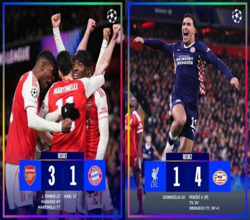 阿森納3-1戰勝拜仁,豪取歐冠5輪全勝登頂。利物浦1-4慘敗荷甲球隊,巴黎5-3熱刺踢瘋了上演進球大戰,皇馬4-3贏球姆巴佩大四喜!